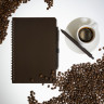 Блокнот на спирали из кофейного материала с резинкой для ручки.
