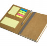 - ОбзорНабор включает в себя разноцветные стикеры разных размеров, блокнот с линованной бумагой и ручку c корпусом из переработанного картона. Обложка выполнена из фактурной искусственной кожи, которая, при тиснении, меняет цвет на более глубокий.