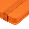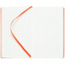 Блокнот в твердой обложке, выполнен из материала Soft Touch Ultra, красный РР, дополнен резинкой и ляссе в цвет обложки.