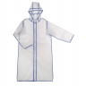 - ОбзорПлащ-дождевик на кнопках с капюшоном Providence Непромокаемый материал EVA - современный и лёгкий Удлиненная модель Прямой крой, втачной рукав Регулировка ширины рукава по низу при помощи кнопки Капюшон с козырьком и утягивающим шнуром Полупрозрачный с цветной окантовкой Складывается в компактную сумку-чехол на кнопках