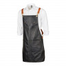 - Стильные акценты: Ремни светлого бука не только удобно фиксируют фартук, но и добавляют контраста черному цвету, делая его настоящим модным заявлением.