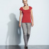 - ОбзорФутболка женственного приталенного силуэта с американской проймой и глубоким вырезом, отделанным обтачкой из джерси. Двойная прострочка на вороте спереди, на рукавах и по низу.