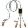 Кабель для быстрой зарядки на 2,4 А (3 x 10 см), обе стороны которого можно персонализировать разными светящимися логотипами. Кабель полностью изготовлен из более экологичных материалов: переработанных ПЭТ-кабелей, бамбука, пшеничных волокон и переработанной пластмассы. Зарядный кабель универсален благодаря 3 выходам (Type-C, Android, iPhone) и может заряжать до трех устройств одновременно. Благодаря двойному входу USB и USB-C кабель совместим с новейшими зарядными устройствами. Поставляется в хлопковой сумке (20 x 8 см) с карточкой из крафт-бумаги. Переработанный PET пластик, Бамбуковое дерево.