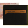 - ОбзорЧехол выполнен из материала Soft Touch Pearl, черный АА, дополнен окрашенным срезом края и внутренним карманом из цветного картона. Имеет 4 отделения для кредитных карт и 1 отделение для купюр.