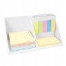 - ОбзорКартонный настольный набор в форме куба, состоящий из подставки для карандашей, блокнота (250 листов) и 180 самоклеящихся стикеров разных цветов.