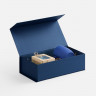 - ОбзорКоробка изготовлена из переплетного картона, кашированного гладкой дизайнерской бумагой Malmero «Благородный синий», с крышкой на магните.