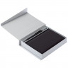 - ОбзорКоробка с клапаном на магните, выполнена из переплетного картона, кашированного бумагой Malmero.Внутренний размер коробки без съемного ложемента под ручку: 17,8х21,3х3,4 см.