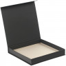 - ОбзорПодарочная коробка из переплетного картона, кашированного дизайнерской софт-тач бумагой Plake, с одной створкой на магните.