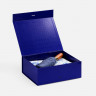 - ОбзорКоробка из переплетного картона с лайнером, ламинированым полуглянцевой текстурной пленкой устойчив к царапинам. Крышка на двух магнитах дополнительно фиксируется репсовой лентой.Толщина картона 2 мм.