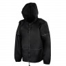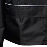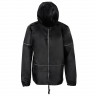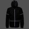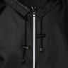 Короткий дождевик прямого силуэта с капюшоном и карманами. Вместительные накладные карманы защищены сверху клапанами, по верхней кромке которых вшит светоотражающий кант. Светоотражающие элементы также расположены на рукавах, капюшоне и молнии, что делает человека заметным даже в темное время суток.