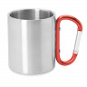 Кружка GUAYA с ручкой карабином, 230 мл, серебристый/красный