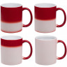 Цветное покрытие создает эффект «цветного стекла»: нанесение выглядит так, словно мы смотрим на него через цветное стекло. Используйте более светлые краски, если хотите, чтобы изображение проглядывало сквозь цветной слой как можно меньше. Лучше всего краски нанесения перекрываются черным цветом, поэтому менее всего изображение будет заметно на черной кружке. Выполнить визуально незаметное нанесение технически невозможно даже при использовании цветов сходных или идентичных цвету кружки.