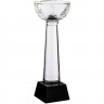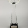 Массивное черное основание и легкое прозрачное навершие создают сбалансированную и устойчивую композицию. При попадании прямого света рельефный рисунок на чаше запускает вокруг легкие блики.