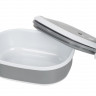 Материалы — пластик и термопластичная резина, безопасные для контакта с пищей и рассчитанные на длительное использование. Ланч-бокс плотно закрывается, что помогает избежать проливаний, однако не является полностью герметичным — идеально для твёрдых и густых блюд.