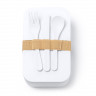 Ланч-бокс из PLA с силиконовым ремешком для регулировки. В комплекте вилка, ложка и нож. Емкость 1 л Наслаждайтесь едой в любом месте.