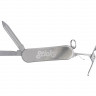 - ОбзорКомпактный складной мультитул, в котором несмотря на его маленький размер, целых три функции: нож, пилка для ногтей, ножницы. Корпус и функциональные части выполнены из нержавеющей стали. Небольшой вес позволяет использовать в качестве брелка, чтобы он всегда сопровождал вас и мог прийти на помощь в любой ситуации. • компактный и легкий • три самых нужных приспособления всегда под рукой • можно использовать как брелок, • две стороны под нанесение