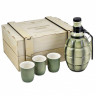 День Победы - один из самых важных и памятных государственных праздников в нашей стране. В этот знаковый для России день принято дарить памятные сувениры. Подарочный набор День Победы - это великолепный подарок на 9 мая, который запомнится надолго. В оригинальном деревянном гранатном ящике находятся керамические боеприпасы: штоф в виде гранаты и три стопки.