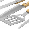 Благодаря длинным ручкам из каучукового дерева лопатку, ножи и щипцы удобно держать, не боясь горячих брызг при готовке. Деревянные ручки не нагреваются, что особенно ценно во время BBQ.