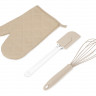 Набор Canele состоит из трёх предметов, без которых не обходится приготовление ни одного пирога или торта: венчика для взбивания яиц или крема, лопатки и прихватки для горячего.