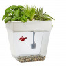 По сути — это замкнутая экосистема, поддерживающая баланс между растениями и рыбкой. Её отходы с помощью насоса поднимаются к горшочкам сверху и питают вашу маленькую плантацию. Взамен рыбка получает очищенную воду, а у любого городского жителя всегда есть в наличии свежая зелень к столу.
