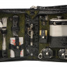 - ОбзорОригинальный дорожный набор на 2 персоны в барсетке с удобным ремешком для переноски. В набор входит: - фляжка 240 мл- 1 шт - стакан складной 40 мл- 2 шт - ложка столовая- 2 шт - вилка столовая- 2 шт - воронка- 1 шт - нож- 1шт - зажигалка- 1шт - фонарик- 1 шт (батарейка AAA в комплекте) - карты игральные- 1 шт