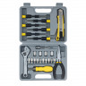 Набор инструментов на 25 предметов STINGER W0402 поможет справиться с широким спектром хозяйственно-бытовых задач. Все инструменты изготовлены из высококачественной закаленной углеродистой стали с хромированным покрытием и прочного углепластика (карбона). Набор включает в себя все основные инструменты, необходимые при проведении мелкого ремонта, починки бытовой техники или сборки мебели.