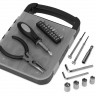- ОбзорНабор инструментов в удобном пластиковом кейсе, состоит из 6 инструментов и 16 насадок: - Плоскогубцы - Отвертка с удлиннителем - 2 шестигранника - 2 тонких отвертки - 6 головок гаечных торцевых ключей (6/7/8/9/10 мм) - 9 бит + адаптер