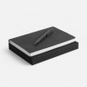 - ОбзорНедатированный ежедневник с гибкой обложкой из фактурного материала La Fite и металлическим шильдом на ляссе и ручка в тон, упакованные в подарочную коробку из дизайнерского картона.