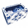 Подобно морозному узору на окне, раскинулся волшебный сад чудесной птицы, где завитки, соцветия и кобальтовые розы созданы в технике Гжель.