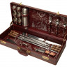 - ОбзорКейс из сплит-кожи, с повышенной износостойкостью, внутренняя отделка натуральная кожа с художественным выжиганием. В комплект входит: Стопка d5,5 х 6 см - 6шт Термос d7 х 25 см - 1шт Вилка 19,5 х 2,5 х 2 см - 6шт Ложка 19,5 х 4,5 х 2,5 см - 6шт Вилка для барбекю 23 х 3 х 3см - 1шт Нож 26,5 х 4 х 2,5 см - 1шт Ножки для мангала 51 х 31 х 1 см - 2шт Шампур d3 х 65,5 см - 6шт Штопор 11 х 3 х 1см - 1шт Нож Проводник 47 х 8 х 3 см - 1шт