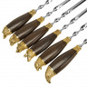 - ОбзорНабор для пикника в кожаном чехле ручной работы. В комплект входит: Тарелка 500 мл d16 х 7 см - 6шт Стопка d5,2 х 6 см - 6шт Нож 28,5 х 4 х 2,5 см - 1шт Ложка 19,3 х 4,5 х 3 см - 6шт Вилка 19,3 х 2,5 х 2 см - 6шт Топор 39,5 х 14,5 х 3,2 см - 1шт Ножки для мангала 50,5 х 31 х 1 см - 2шт Шампур 68 х 4 х 2,5 см - 6шт