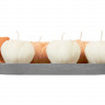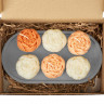 В наборе три белых свечи со сладким ароматом французской ванили, две персиковых с согревающими и укутывающими нотками перца, нероли и амбры и одна темно-персиковая, обладающая свежим и успокаивающим запахом лаванды. Это позволяет выбрать аромат под настроение.
