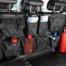 В органайзере имеются разные по форме и типу карманы: карманы-сетки, карманы с крышкой на липучке, открытые карманы.Конструкция крепится ремнями за подголовники задних сидений. Дополнительно на задней части органайзера имеются ленты-липучки, которые обеспечивают полное прилегание органайзера к спинкам задних кресел.