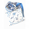 Платок из коллекции бренда Русские в моде посвящён уникальному искусству этой росписи. Изображения спиралевидных орнаментов в виде волн, елочек, рыбок украшают дизайн. Все это означает плодородие стихий земли и воды, энергию солнца, богатство и процветание.