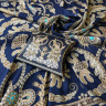 Платок Русское золотное шитьё посвящён драгоценному старинному русскому рукоделию. Дошедшие до нас памятники шитья, выполненные русскими мастерицами, являются произведениями высокой культуры. В изделиях сочетаются талант художника и тонкий вкус, духовное богатство, исполнительское мастерство вышивальщиц.