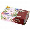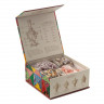 Купажи чая составлены так, чтобы сочетать вкус и аромат отборных сортов китайского и индийского чай с красотой разноцветных лепестков мальвы, лилии, жасмина и акации. В набор также входят монпансье со вкусом чёрной смородины и цукаты из кумквата. Внутри шкатулки находится мини-открытка, которую покупатель может подписать.