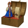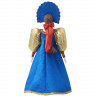 - Куклу ручной работы: сувенирная фарфоровая кукла в традиционном девичьем праздничном костюме. Яркий сарафан синего цвета, пышные рукава и кокошник с богатым декором отражают подлинный облик русского народного наряда.
