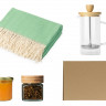 Подарочный набор с пледом, френчпрессом, чаем и вареньем, зеленый