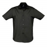 - ОбзорМужская рубашка с коротким рукавом из ткани стрейч. Итальянский полуоткрытый воротник с 1 пуговицей. Облегающий крой, планка на 7 пуговиц в тон изделия.