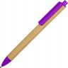 Ручка картонная пластиковая шариковая Эко 2.0, бежевый/фиолетовый