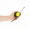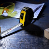 Длина измерительной ленты 5 метров позволяет работать на больших расстояниях. Лента оснащена магнитным наконечником для надежного сцепления с металлическими поверхностями. Корпус рулетки выполнен из прочного пластика с накладкой из ПВХ, которая предотвращает скольжение инструмента в руке.