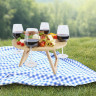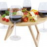 - ОбзорПикник на балконе, в саду или на пляже всегда будет очень комфортным благодаря этому складному столику с 4 фиксированными отверстиями под винные бокалы. Столик очень просто раскладывается, и его легко носить с собой. Он сделан из бамбука, который добывается и производится в соответствии со стандартами устойчивого развития.