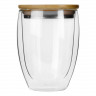 Стакан Valday от бренда Eat&Bite Select — не только красивый, но и продуманный: боросиликатное жаропрочное стекло, безопасное для человека, прочное и легкое, выдерживает до 150 градусов по Цельсию, а бамбуковая крышка с силиконовым уплотнителем дополнительно позволяет снизить скорость остывания напитка. Стальная вставка на крышке препятствует образованию трещин.