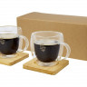 Стеклянный стакан Manti объемом 250 мл с двойными стенками и подставкой из бамбука, 2 шт. , natural