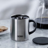 Стальная и стильная термокружка серии JDG знаменитого производителя THERMOS пригодится и на рабочем столе, и в походе. За счёт двойных стенок и вакуумной термоизоляции она сохраняет напитки теплыми или прохладными дольше обычных кружек. Вакуум между стенками не позволяет корпусу нагреваться от воздействия горячих жидкостей, поэтому исключён риск обжечься от прикосновения, а для удобства удержания в руке или крепления к рюкзаку предусмотрена прочная ручка эргономичной формы. Для длительного хранения напитков холодными можно использовать кубики льда, при этом на поверхности термокружки не образуется конденсат, поэтому её можно ставить на любые поверхности, не опасаясь появления пятен от воды.