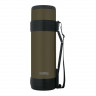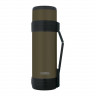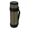 Термос укомплектован крышкой-чашкой объёмом 420 мл. Комфорт в транспортировке и эксплуатации обеспечивают также складная ручка, съёмный плечевой ремень и специальные стопперы на корпусе для устойчивости термоса в горизонтальном положении. Уникальное износостойкое покрытие цвета хаки надолго сохранит первоначальный вид изделия.