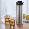 Новая эстетика в чаепитии и заваривании напитков создана всемирно известной компанией THERMOS и отражена в модели TTD-1000, в которой привычное сочетается с необычным, а функциональное с лаконичным. К традиционным относятся настоящее качество, премиум материалы и безупречные характеристики, присущие всем изделиям легендарной торговой марки, а к нестандартным – оригинальные конструктивные особенности термоса как новое слово в чайной церемонии. Витаминные напитки, травяные настои, чаи с разнообразными полезными и ароматными добавками – любой ваш рецепт реализует термос TTD. Сложите все ингредиенты в фильтр-пакет, поместите его в специальный держатель, которые легко крепится к основанию крышки-пробки, и залейте кипятком. Конструкция держателя выполнена таким образом, чтобы был обеспечен максимальный контакт заварочной смеси с горячей водой, а длительное поддержание оптимальной для заваривания температуры позволяет получить насыщенный по вкусу и аромату напиток. Благодаря вакуумной термоизоляции он будет оставаться горячим в течение суток. Такой же длительный период гарантирован и для холодных напитков, а чтобы сохранить их прохладу как можно дольше, используйте кубики льда.