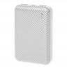 Внешний аккумулятор имеет пластиковый матовый корпус. Пауэрбанк заряжается через универсальный порт Type C или Micro-USB и отдает энергию через два классических порта USB. Благодаря встроенному в корпус индикатору уровня заряда батареи, удобно следить за расходом батареи.