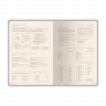Внутренний блок выполнен из бежевой бумаги плотностью 70 г/кв.м и содержит 14 страниц справочной информации, а также датированные страницы с почасовой разметкой.