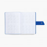 Ежедневник с гибкой обложкой, выполнен из материала La Fite, черный АА и Nubuck Touch, синий, дополнен синим ляссе и хлястиком на кнопке.